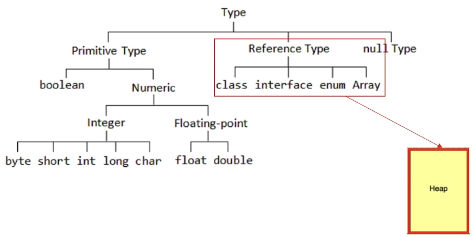 Heap 영역에 생성된 객체 및 배열 is Reference Type ⇒ JVM Stack Area의 변수 or 다른 객체의 필드에서 참조 됨 ⇒ 힙의 참조 주소 → 스택이 가짐 ⇒ 해당 객체를 통해서만 힙 영역의 인스턴스 핸들링 가능