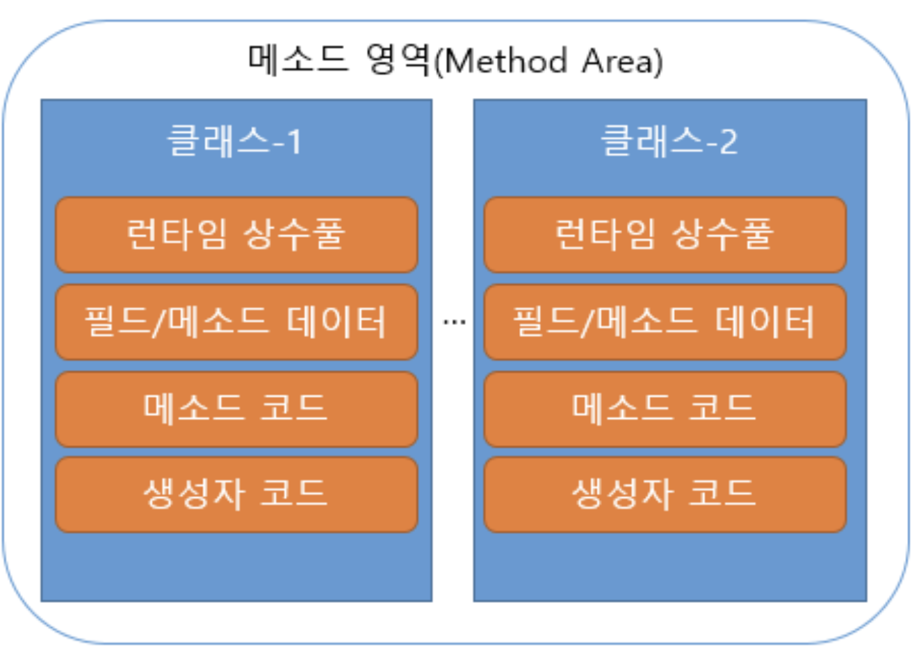 ⇒ 간단히 말해, 메서드 영역에는 정적 필드, 클래스 구조만을 가짐