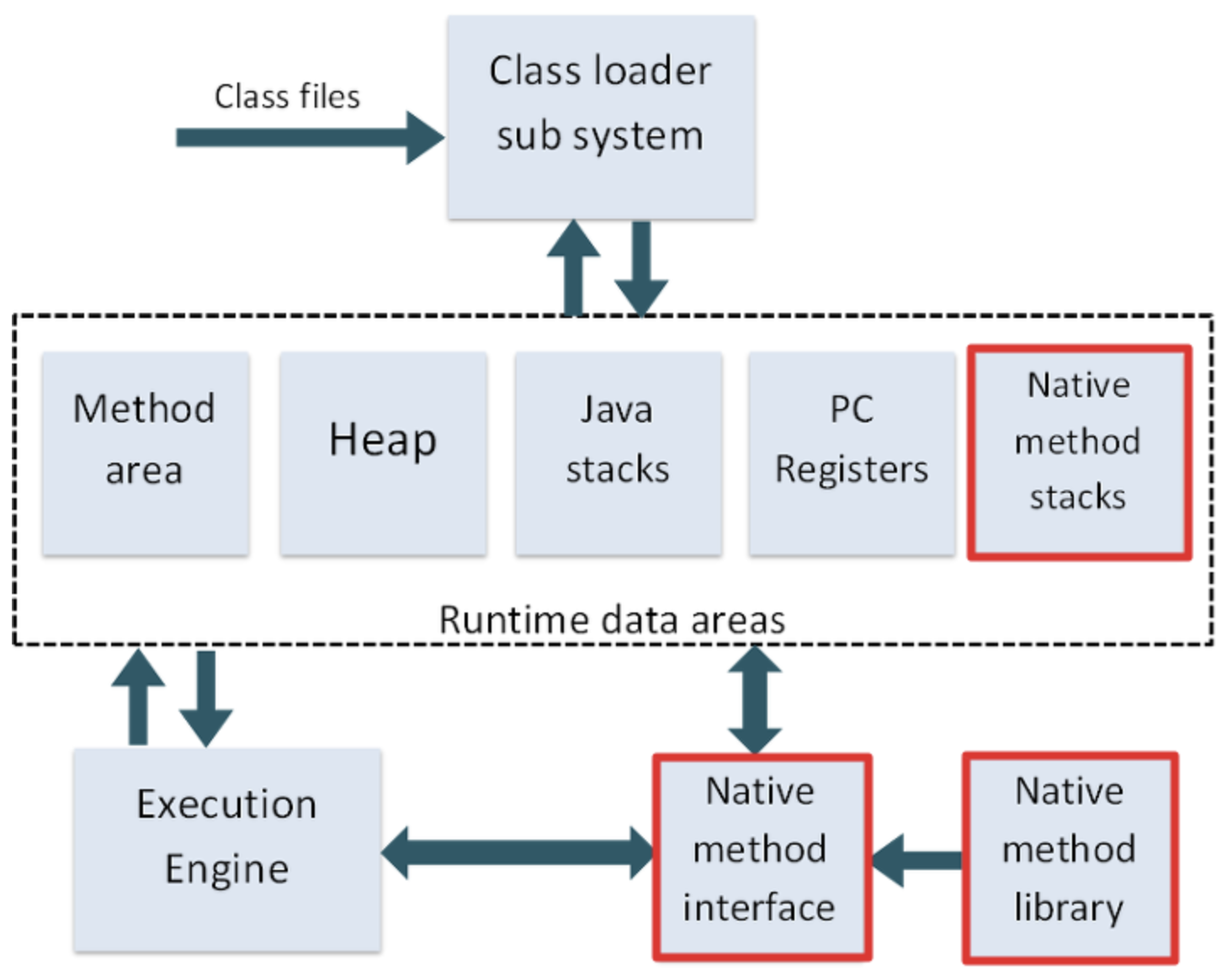 - 요약 도식의 Class Loader ↔ Execution Engine ↔ Runtime Data Area 부분의 상세화한 도식
