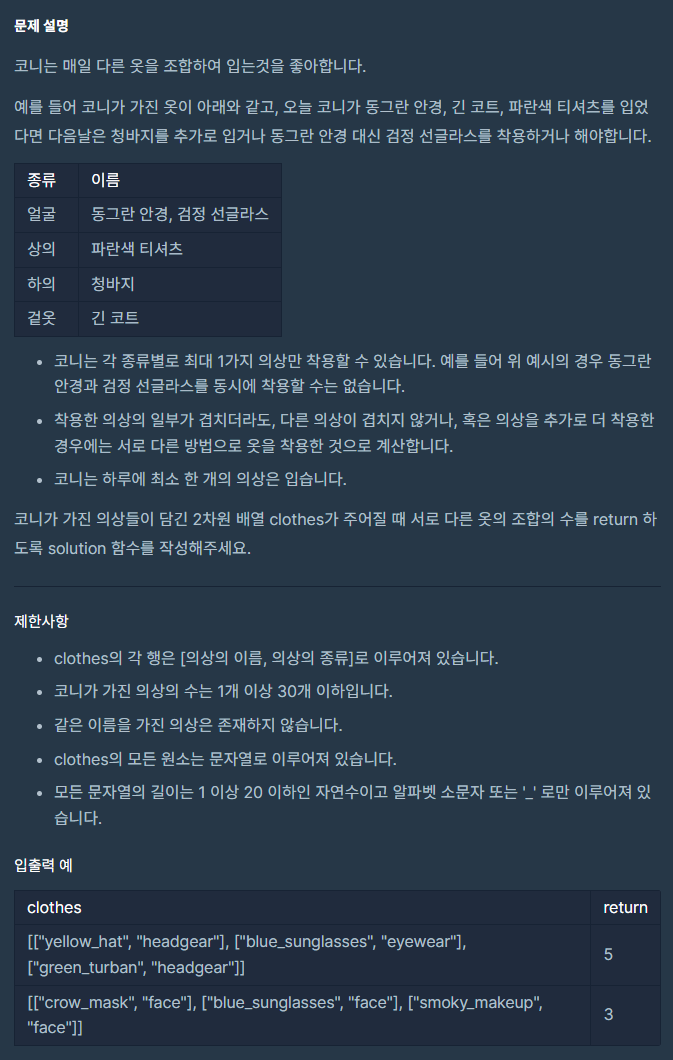 - 총 경우의 수를 구할 때, 나는 겹치지 않게 입는 경우의 수를 위해